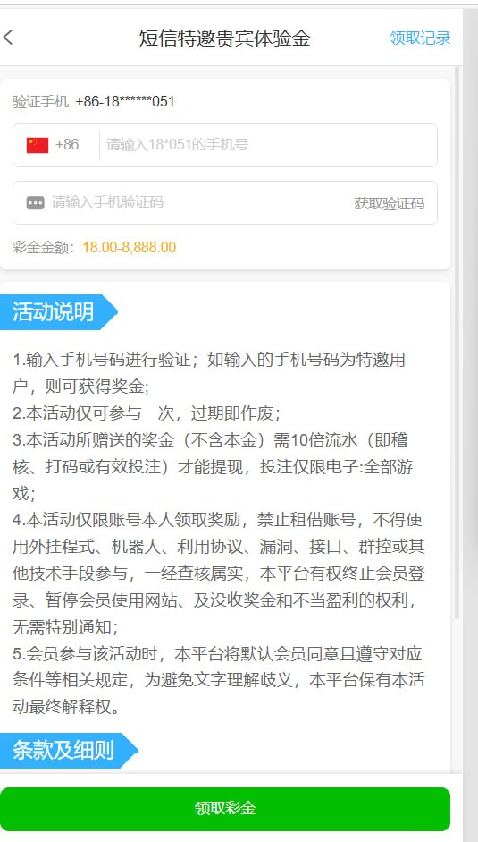 优惠大厅 输入手机号验证是特邀领取18彩金 网址是 https://www.613897.com/?dl=63n81t