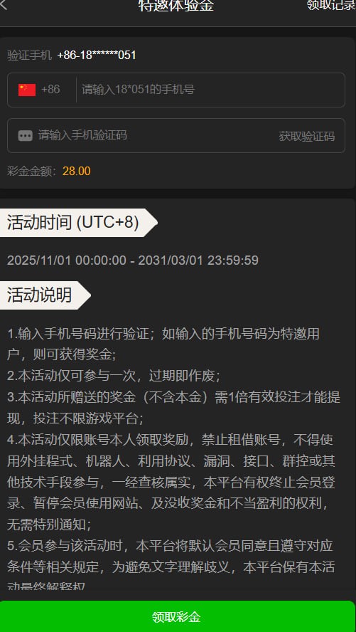 手机验证是特邀领取28 地址 3016.com