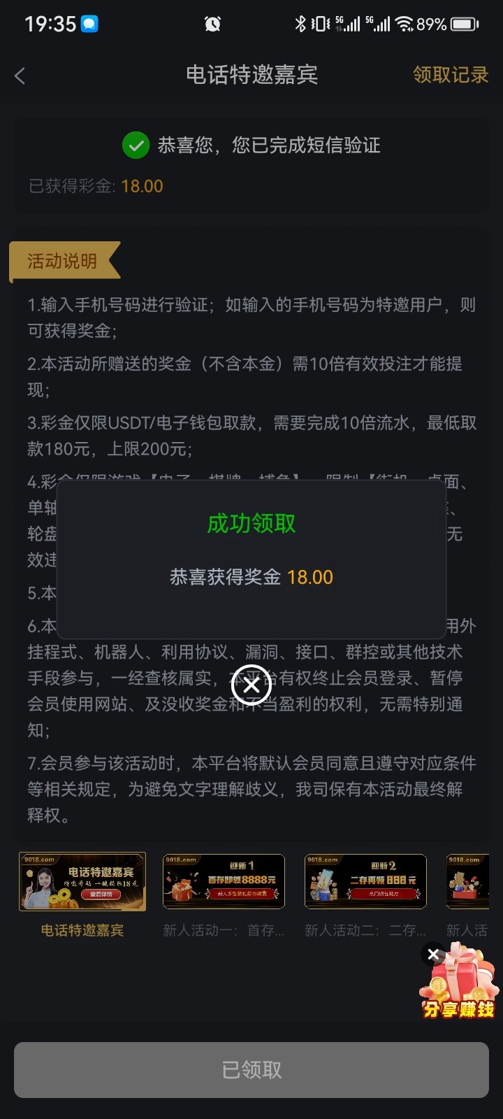 【金沙娱乐场】电话特邀验证短信送18