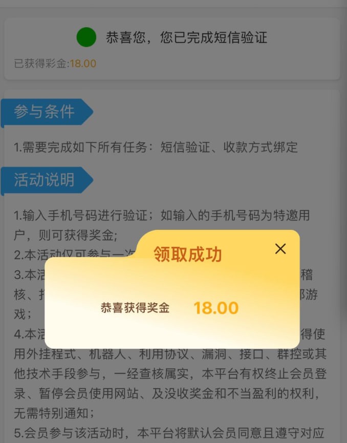 接到电话然后去短信验证18彩金,黑不黑不知道我没打出来,可以去碰瓷一下