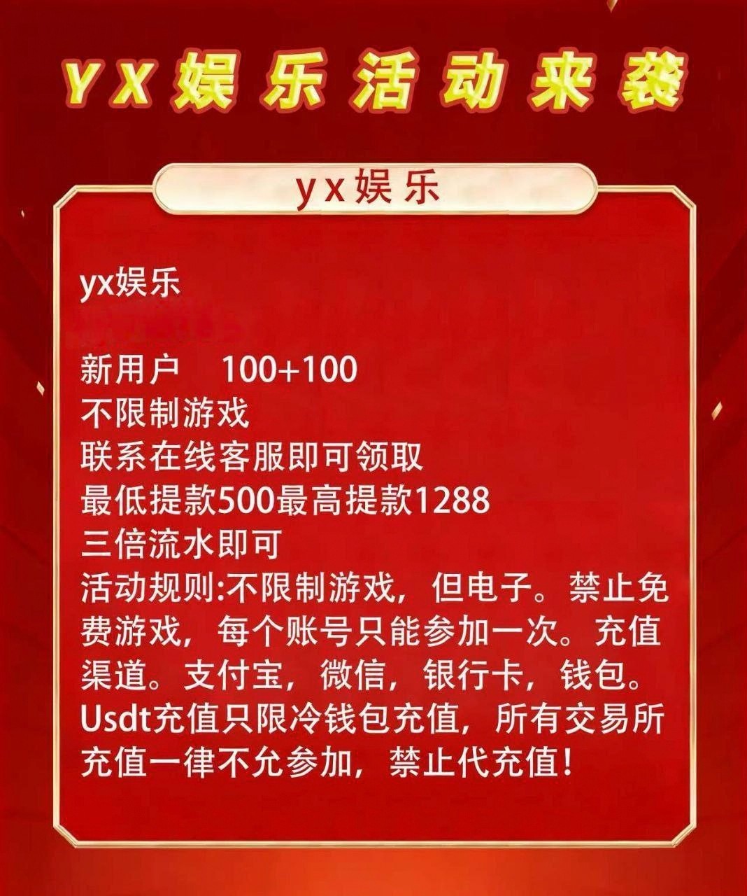 【YX娱乐】⚜️100+100⚜️无限制游戏